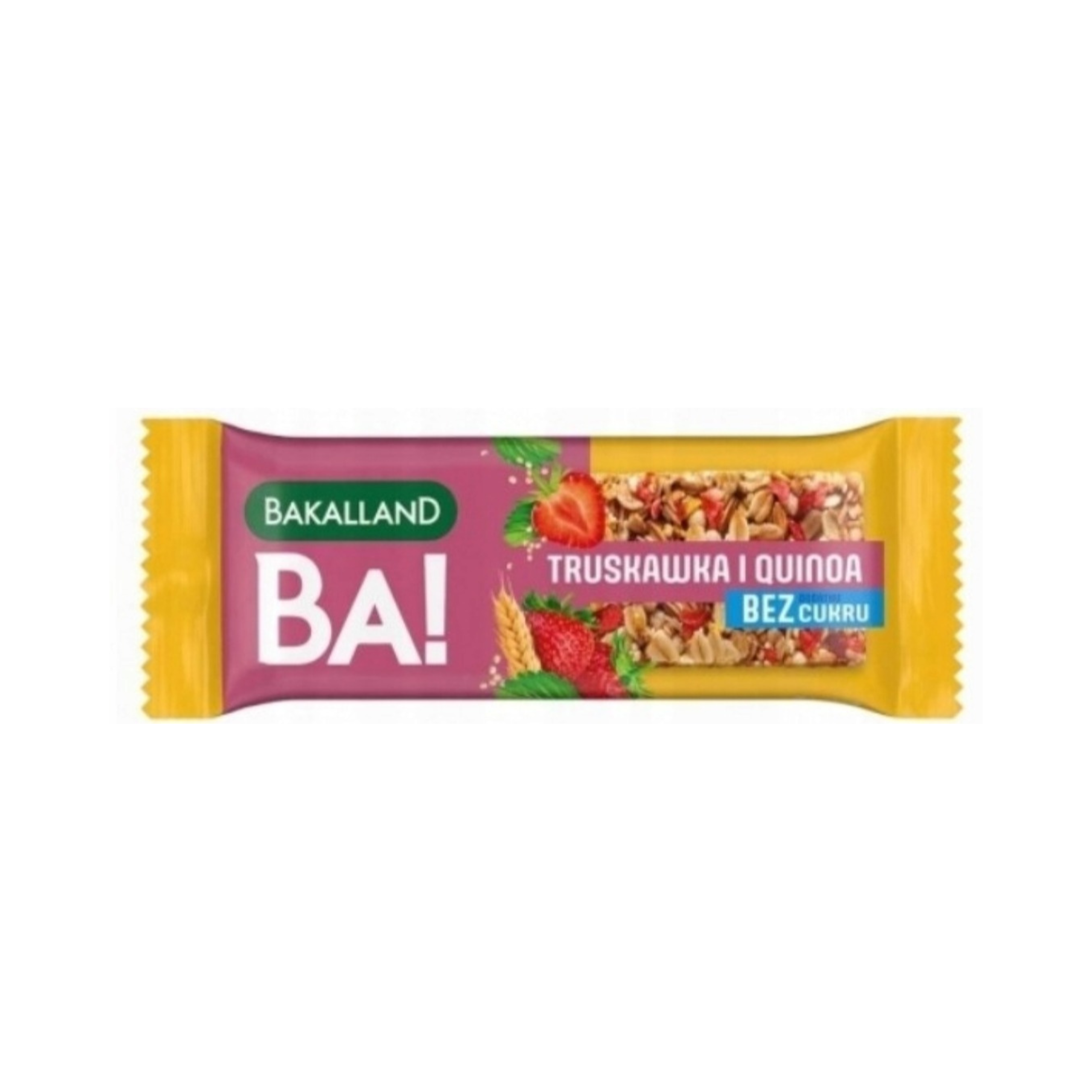 Recepturabatonów zbożowych Bakalland BA! 5 zbóż truskawka i quinoa została stworzona dla konsumentów, którzy żyjąc w biegu nie chcą rezygnować z wartościowych przekąsek. Przyzwyczajeni do wielozadaniowości oczekują, że produkt spożywczy będzie uniwersalny i jednocześnie pełen składników odżywczych oraz natychmiast gotowy do spożycia. Batony BA! bez dodatku cukru wpisują się także w potrzebę włączania do diety zbóż, nasion i ziaren w jak najczystszej, ale nadal wygodnej i smacznej formie. Stworzone z najwyższej jakości chrupiących zbóż – owsa, pszenicy, jęczmienia, żyta i ryżu – z dodatkiem liofilizowanej truskawki oraz ziaren quinoa stanowią doskonałe uzupełnienie diety. Pozbawione są syropu glukozowego oraz tłuszczów utwardzonych. Batony zawierają dodatek naturalnego błonnika – inuliny, wytwarzanej z korzenia cykorii.