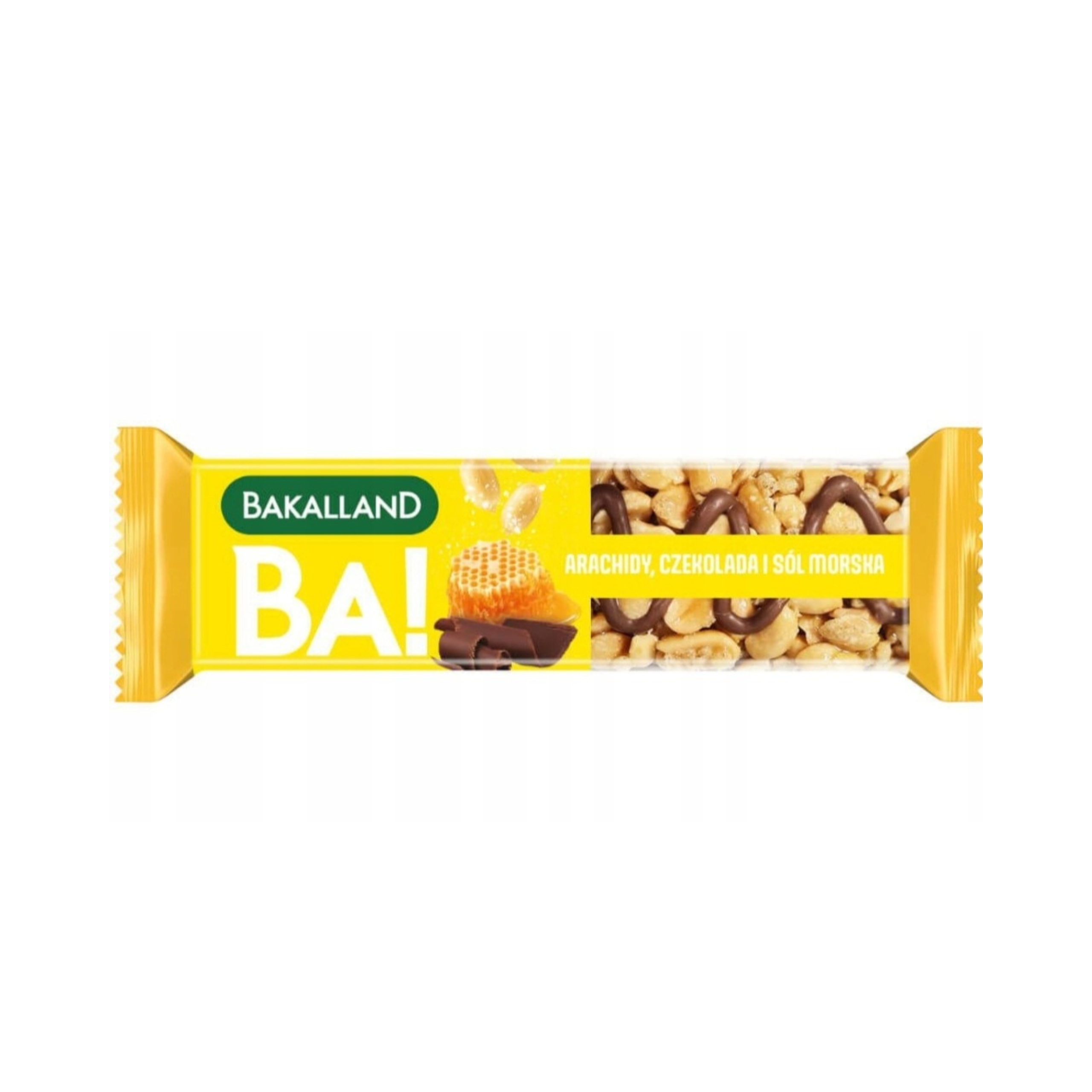 Ba! Baton Nuts Arachid z Czekoladą, baton orzechowo-miodowy oblany czekoladą to przekąska na bazie orzechów, który charakteryzuje się dużą chrupkością. Przenikają się w nim smaki: orzechówmlecznej czekolady, miodu i chrupek zbożowych. Słodka kompozycja jest delikatnie przełamana odrobiną soli morskiej, co doskonale harmonizuje z intensywnym smakiem orzechów.